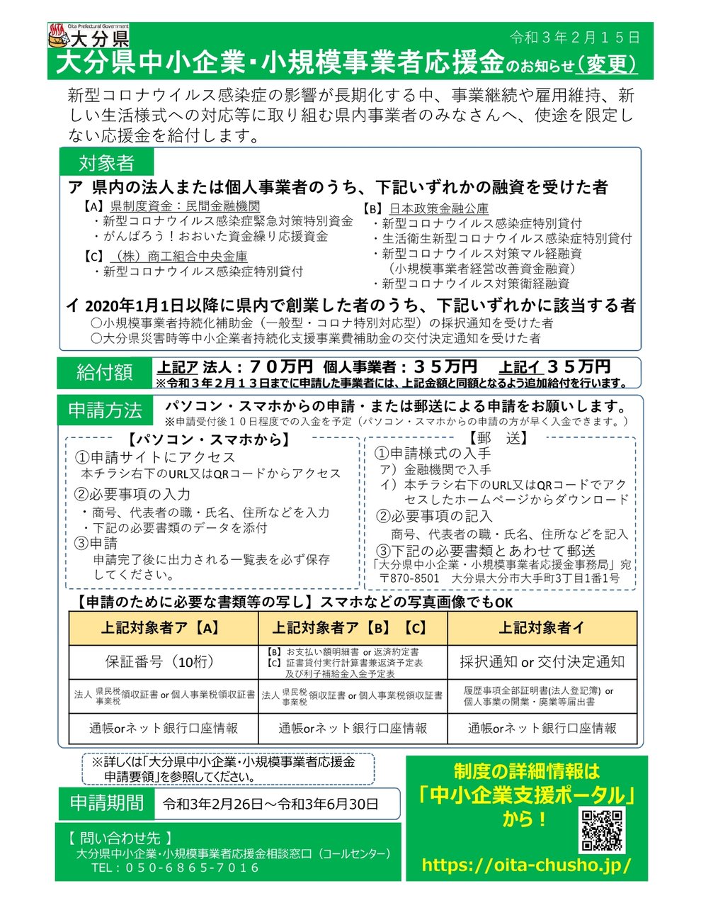 「大分県中小企業・小規模事業者応援金」